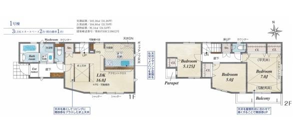 | 建物面積 | 100.44m2 | 土地面積 | 73.15m2 |