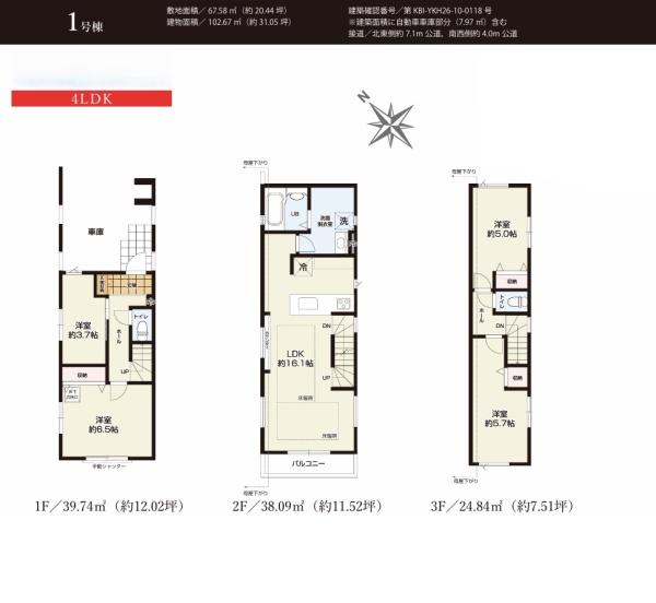 | 建物面積 | 102.67m2 | 土地面積 | 67.8m2 |